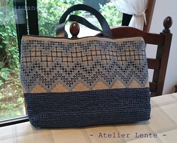 同じ色の糸の刺繍でかごバッグ