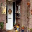 かぼちゃ 秋になるとあちこちで見かけるのがかぼちゃです。日本で「かぼちゃ」と言うと緑色の、そして少し黄色いところのあるあのどっしりと重たいかぼちゃを思い浮かべるでしょう。 オランダのかぼちゃはオレンジ色の大きいかぼちゃから、緑とクリーム色、黄色など色も形もかわいいものまでたくさん売りに出されています。名前まで「ポンプン」なんてかわいらしい名前です。これが秋になってくるとあちこちの家の玄関に飾られるのです。ドアの横に並べてあったり、かごにつんであったり、椅子に乗せてあったり、いかにも秋らしくディスプレイされています。もちろん家の中にも、庭にも飾ってあります。